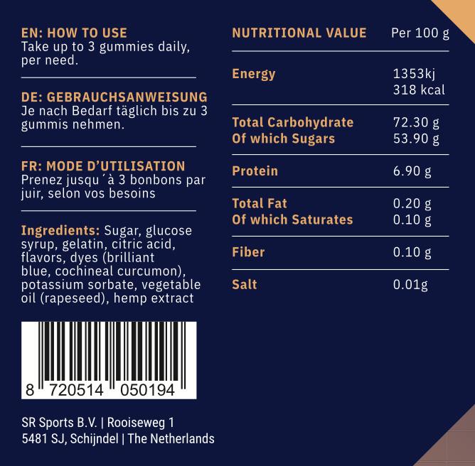 Migliora il tuo stile di vita attivo con CBD+Sports Orsetti gommosi alla frutta mista. Ogni orsetto contiene 15 mg di CBD premium e ce ne sono 60 in ogni bottiglia. Goditi i deliziosi gusti di frutta mista beneficiando al tempo stesso del potere naturale del CBD. Perfetto per atleti e appassionati di fitness. Scopri l’equilibrio e il relax che meriti in ogni boccone!
